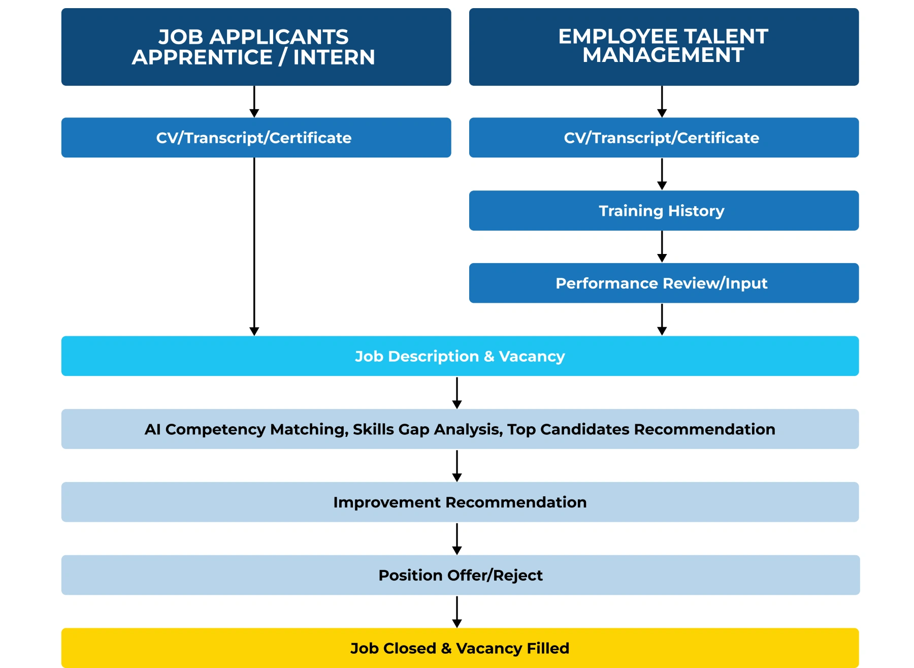 With built-in shortlisting tools, ai.HumanCapital™ supports program qualification, employee mobility, and long-term workforce planning – delivering faster, smarter, and right hiring and development decisions.